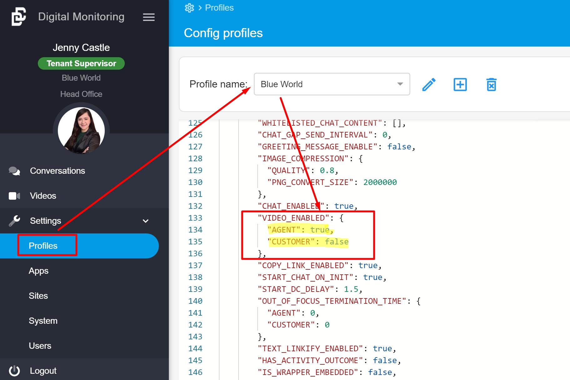 To allow multi-party video conference, set the following "VIDEO_ACTIONS" > "AGENT" > "CONFERENCE_ACTION_ENABLE": true