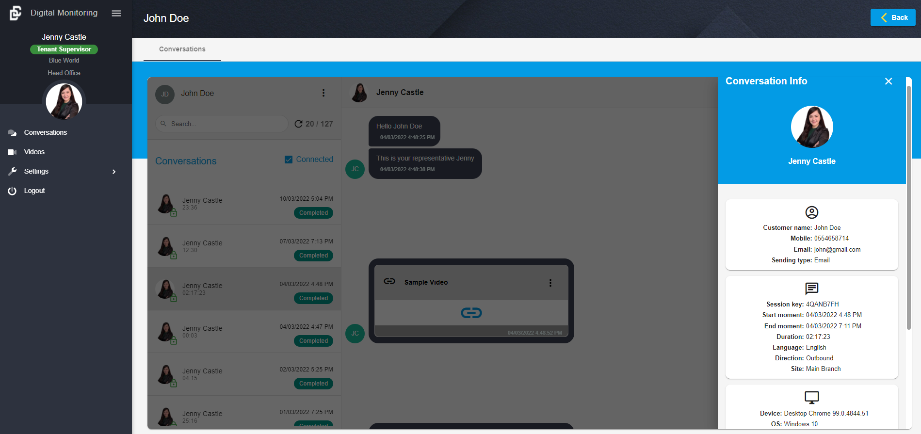 Note. A Supervisor can view conversation with status In progress or Completed only.