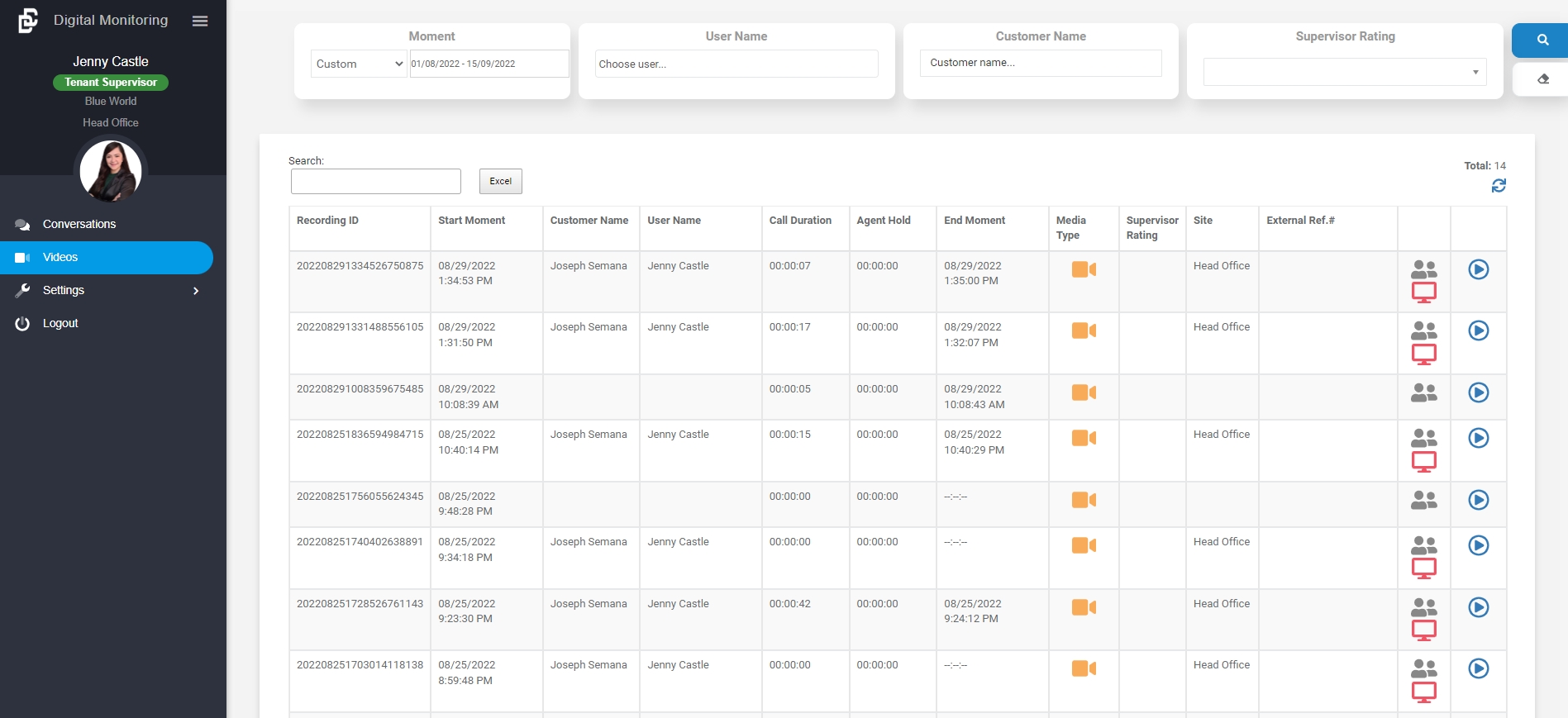 Right below the Video Call Recording is the Screen Recording, where you see the user's screen during the session.