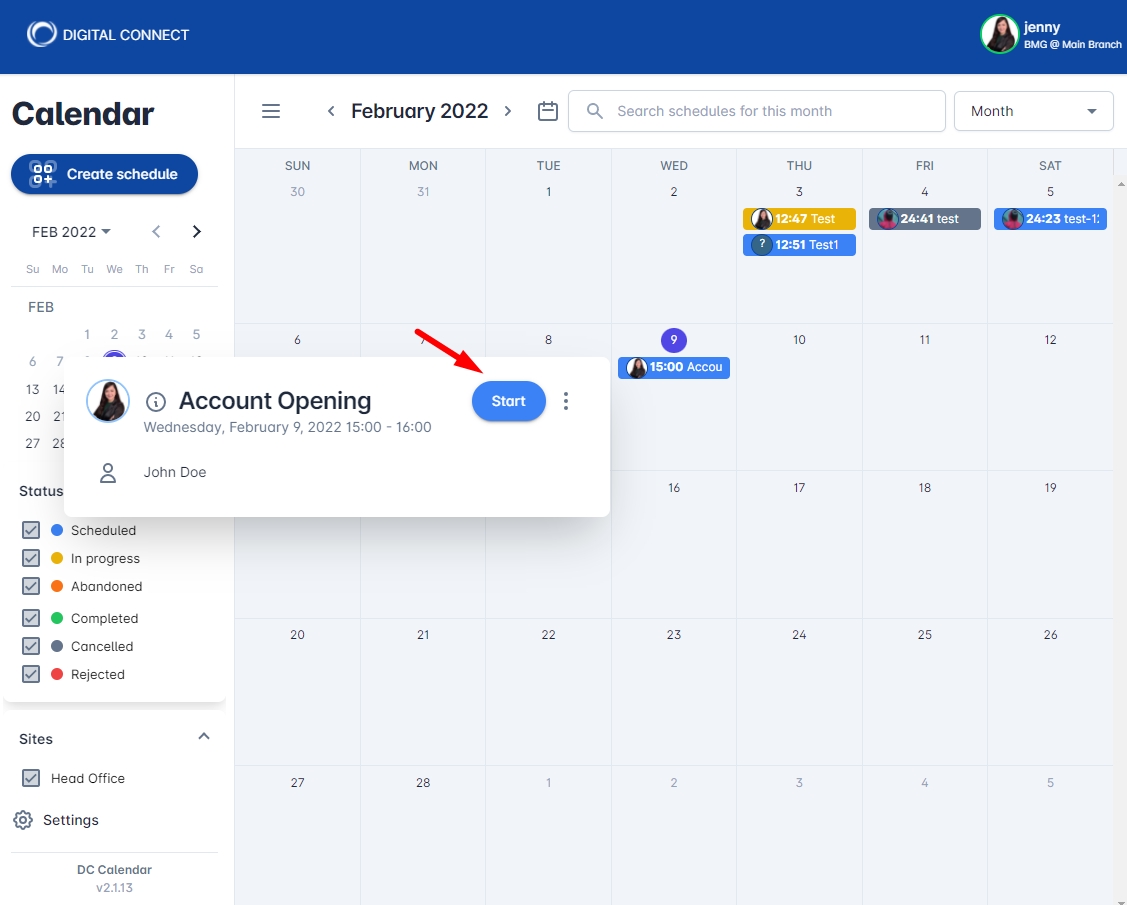 Yes! You have successfully accessed the Calendar. Start your Scheduled Session!